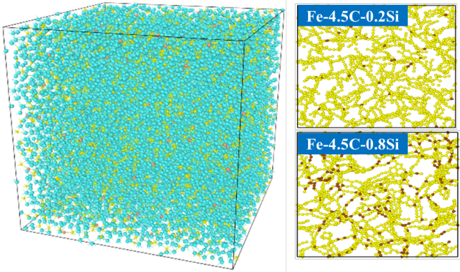 在操作調控方麵,項目組開發了包括原燃料粒度及性能管控、高風速大動能、渣(zha)鐵(tie)流(liu)動(dong)控(kong)製(zhi)及(ji)渣(zha)鐵(tie)排(pai)放(fang)管(guan)控(kong)的(de)爐(lu)缸(gang)活(huo)躍(yue)狀(zhuang)況(kuang)調(tiao)控(kong)的(de)係(xi)列(lie)技(ji)術(shu),促(cu)進(jin)鐵(tie)液(ye)滲(shen)碳(tan),提(ti)高(gao)鐵(tie)液(ye)碳(tan)飽(bao)和(he)度(du),為(wei)爐(lu)缸(gang)自(zi)修(xiu)複(fu)奠(dian)定(ding)基(ji)礎(chu)。在(zai)鐵(tie)焦(jiao)滲(shen)碳(tan)方(fang)麵(mian),通(tong)過(guo)高(gao)溫(wen)實(shi)驗(yan)和(he)分(fen)子(zi)動(dong)力(li)學(xue)模(mo)擬(ni),明(ming)晰(xi)了(le)鐵(tie)液(ye)滲(shen)碳(tan)路(lu)徑(jing)及(ji)鐵(tie)液(ye)組(zu)分(fen)對(dui)鐵(tie)液(ye)滲(shen)碳(tan)的(de)作(zuo)用(yong)機(ji)製(zhi),明(ming)確(que)促(cu)進(jin)鐵(tie)液(ye)滲(shen)碳(tan)的(de)影(ying)響(xiang)因(yin)素(su)。即(ji)增(zeng)加(jia)焦(jiao)炭(tan)灰(hui)分(fen)中(zhong)堿(jian)性(xing)物(wu)質(zhi),改(gai)善(shan)焦(jiao)炭(tan)灰(hui)分(fen)流(liu)動(dong)性(xing),增(zeng)大(da)鐵(tie)液(ye)-焦炭界麵的有效接觸麵積等,提高鐵液滲碳速率。適當提高鐵液中Si、Ti含量,降低S、Mn、P含量,提高鐵液碳飽和度。