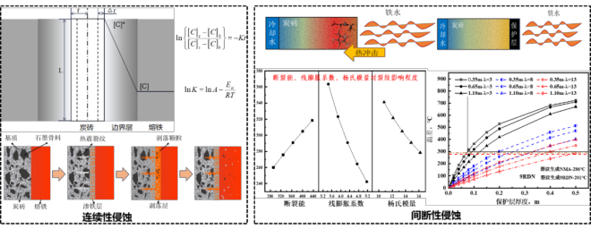 建立了高爐爐缸炭磚連續性侵蝕速率方程,明確溫度和碳含量等因素對炭磚侵蝕影響機製;明晰高爐爐缸炭磚間斷性侵蝕影響機製,揭示爐缸保護層消蝕及生成對炭磚微裂紋形成影響規律。