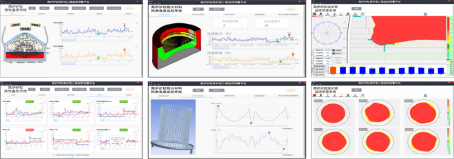 兼顧高爐爐缸設計及高爐操作技術,構建了協同冷卻係統、鐵液環流、耐材配置三位一體的高爐爐缸保護層三維監控預警平台,平台分為高爐爐缸活性監控、耐火材料熱麵溫度監控、保護層監控預警三大係統,實現高爐爐缸保護層的可視化在線監控及自修複控製。