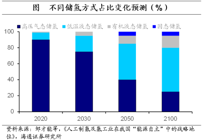 根據《中國氫能源及燃料電池產業白皮書(2019)》的技術路線展望,“低壓到高壓、氣態到多相態”是氫氣儲運未來的發展方向。根據鄒才能等(2019)的預測,到2050年,我國液態儲運的比例將從2020年的10%提高到55%,而這就需要在氫氣液化相關技術方麵的大量投入。