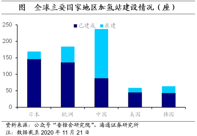 而氫燃料汽車的廣泛應用,還需要基礎設施,如加氫站的配套建設。截至2020年底,全球共建成加氫站約544座,其中我國128座,占比約為23.5%。根據《中國氫能與燃料電池白皮書(2019)》預測,我國加氫站數量在2035年將達到1500座,在2050年將達到10000座以上,為實現這一目標,加氫站數量的年均增速達15.6%。ergenjuxiangchengyanjiuhuitongjideqingkuang,dangqianwoguojiaqingzhanjianshedesuduzaiquanqiulingxian,zaijianshuliangyuanchaoqitaguojiahediqu,keyiyujianzaijinqi,woguojiangjixutuijinqingnengjichusheshilingyujianshe。