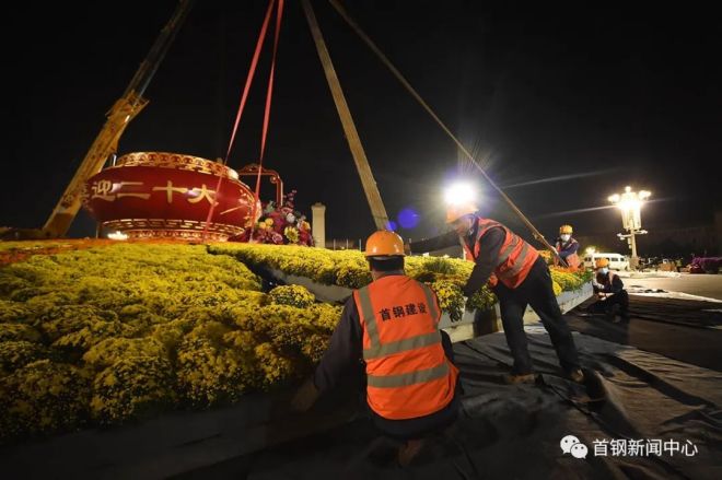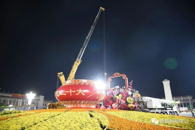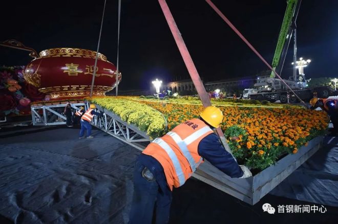 喜迎二十大 | 18米高245噸重國慶主題花籃亮相天安門,首鋼連續15年承擔製作安裝任務