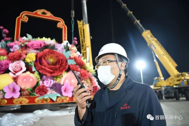 位於天安門廣場中心的“祝福祖國”巨型花果籃,由首鋼建設鋼構分公司製作安裝,記者在現場遇到了忙碌的首鋼建設鋼構分公司第一項目部項目經理王克文。