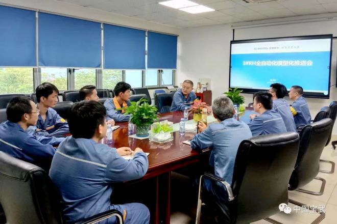 傳統煉鋼廠精煉RH需要主操、中央工、平台工三人操作,作業頻繁且需要作業人員注意力高度集中。湛江鋼鐵煉鋼廠敢於創新、勇於突破,成功首創精煉RH全自動化全模型化運行。這是湛江鋼鐵積極落實寶武“四個一律”、推進“三跨融合”、構建智慧發展優勢的生動踐行。