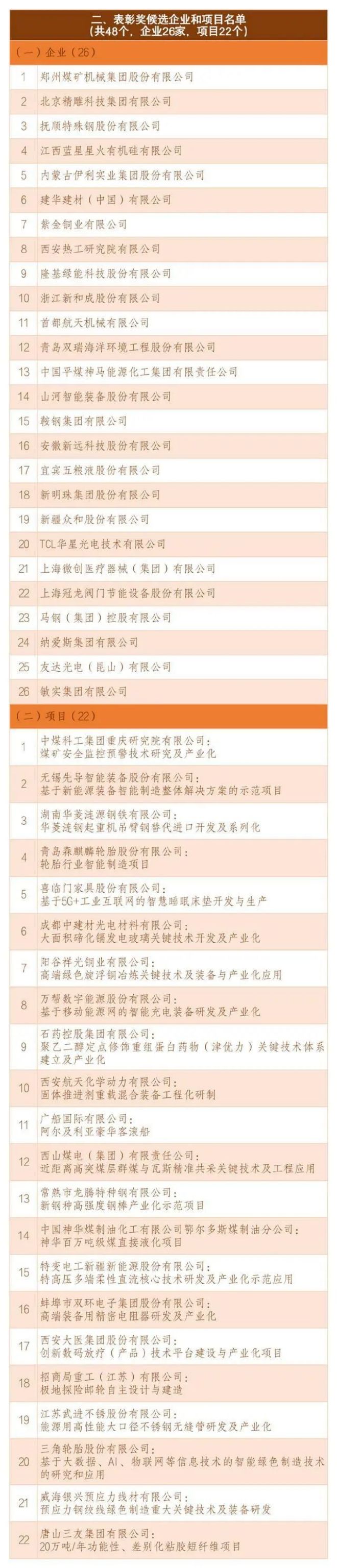 鋼鐵行業5家企業、7個項目上榜第七屆中國工業大獎候選公示名單