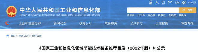 近日,工業和信息化部網站發布了《國家工業和信息化領域節能技術裝備推薦目錄(2022年版)》公示(以下簡稱《目錄》)。