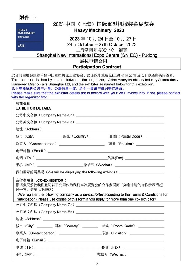 關於舉辦“2023中國(上海)國際重型機械裝備展覽會”的通知