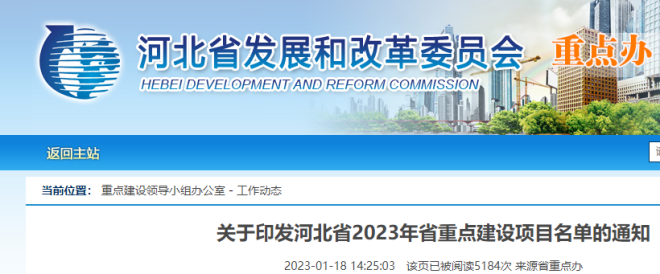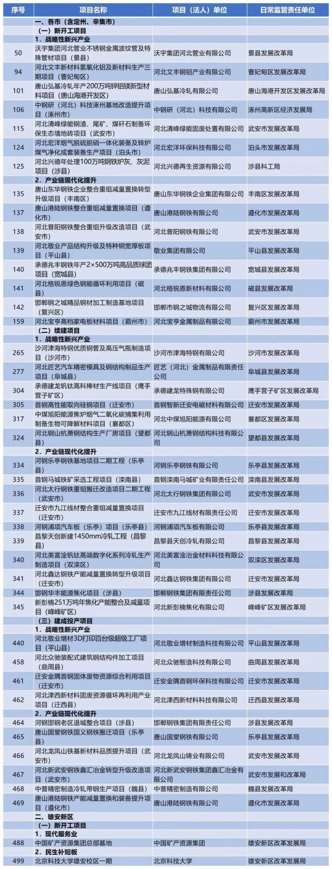 近日,河北省發展改革委網站發布《關於印發河北省2023年省重點建設項目名單的通知》(以下簡稱《通知》)。《通知》提到,2023年河北省重點建設項目名單已經省政府同意,由省重點建設領導小組辦公室印發。項目共計507項,總投資1.32萬億元,年度預計投資2600.1億元。經中國冶金報—中國鋼鐵新聞網小編整理,43個鋼鐵及相關項目在列——