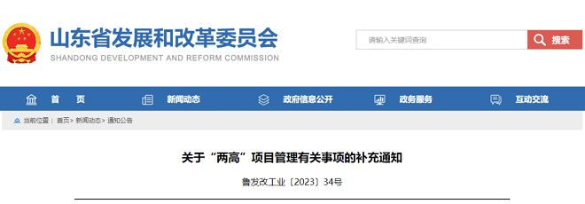 近日,山東省發展改革委等九部門印發《關於“兩高”項目管理有關事項的補充通知》(以下簡稱《通知》)。