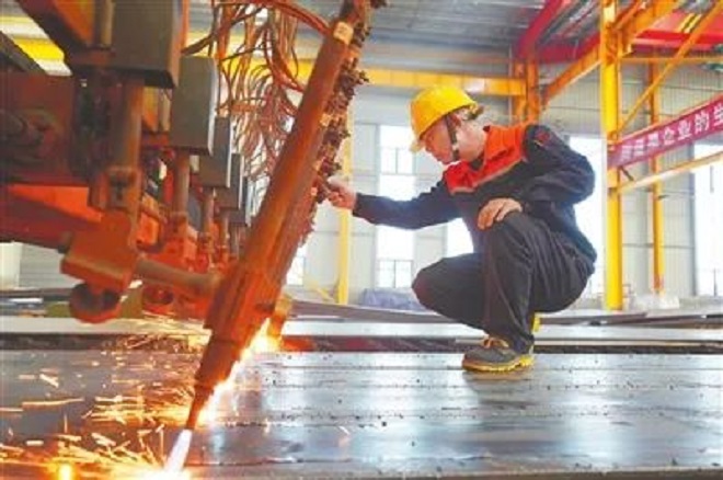 走進位於新餘經開區的江西張少裝配式建築有限公司,生產車間裏一派繁忙景象,鋼材切割、焊接、拋丸、噴漆……工人在各自崗位上緊張作業。該公司副總經理黃偉東告訴記者:“企業主要加工、製造輕型鋼結構廠房鋼梁和鋼柱等大型金屬結構成型設備,目前每月加工鋼材4500噸,年加工5萬多噸。”