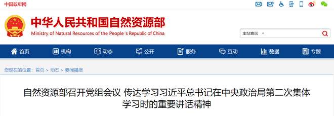 近日,從自然資源部網站獲悉,2月3日,自然資源部黨組書記、部長王廣華主持召開部黨組會議,傳達學習習近平總書記在中央政治局第二次集體學習時的重要講話精神,研究部署貫徹落實措施。