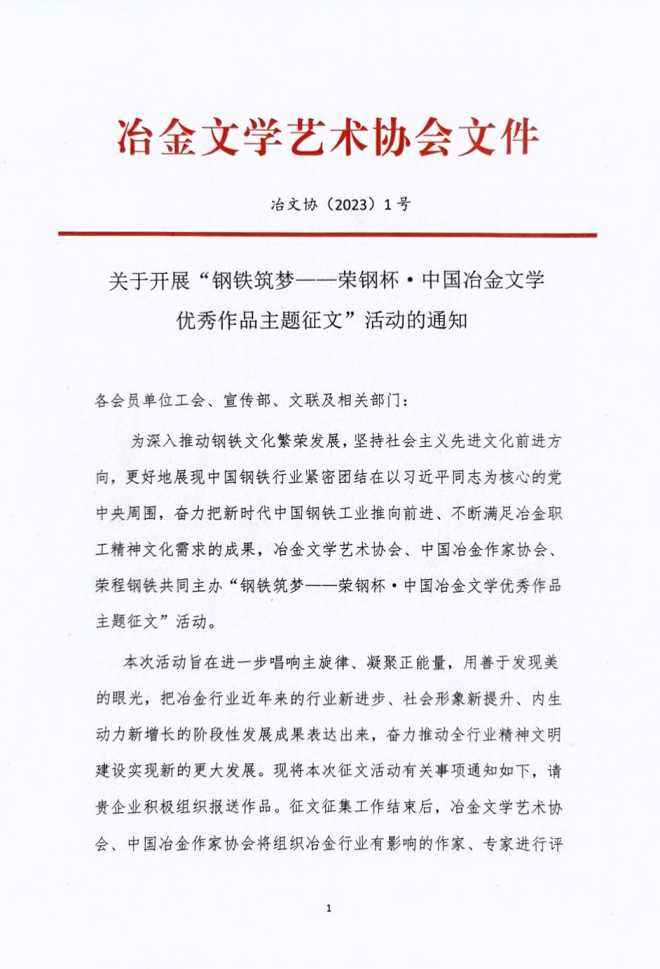 “鋼鐵築夢——榮鋼杯·中國冶金文學優秀作品主題征文”活動通知