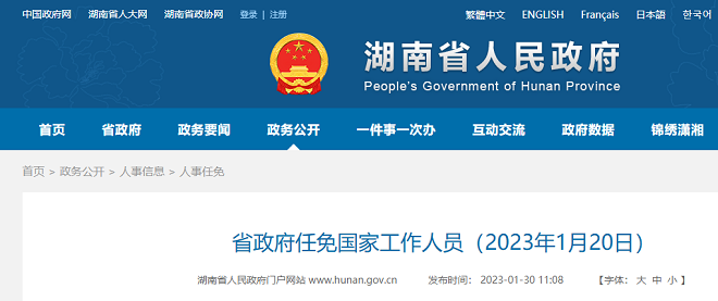 1月30日,湖南省人民政府網站發布《省政府任免國家工作人員(2023年1月20日)》。該公開信息提到,免去肖尊湖同誌的湖南鋼鐵集團有限公司董事長職務。