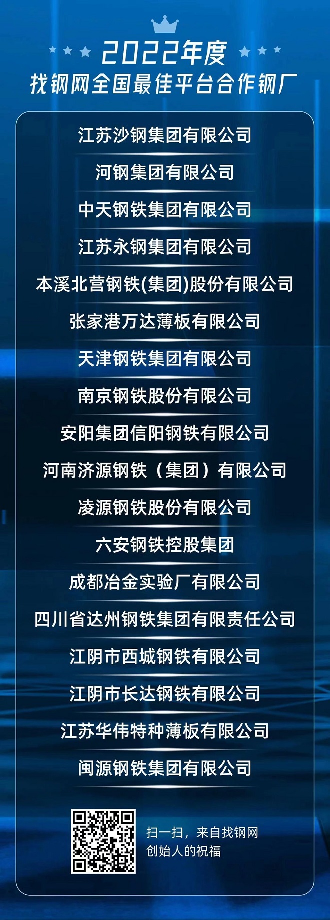 28家鋼企分別榮獲找鋼網2022年度全國最佳平台合作鋼廠、最佳易采合作鋼廠獎項