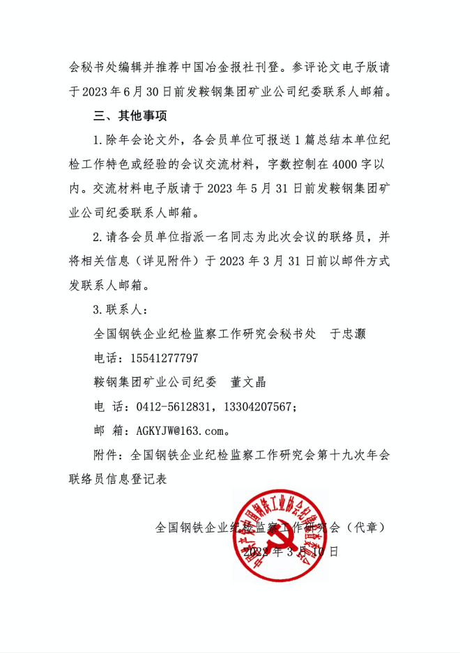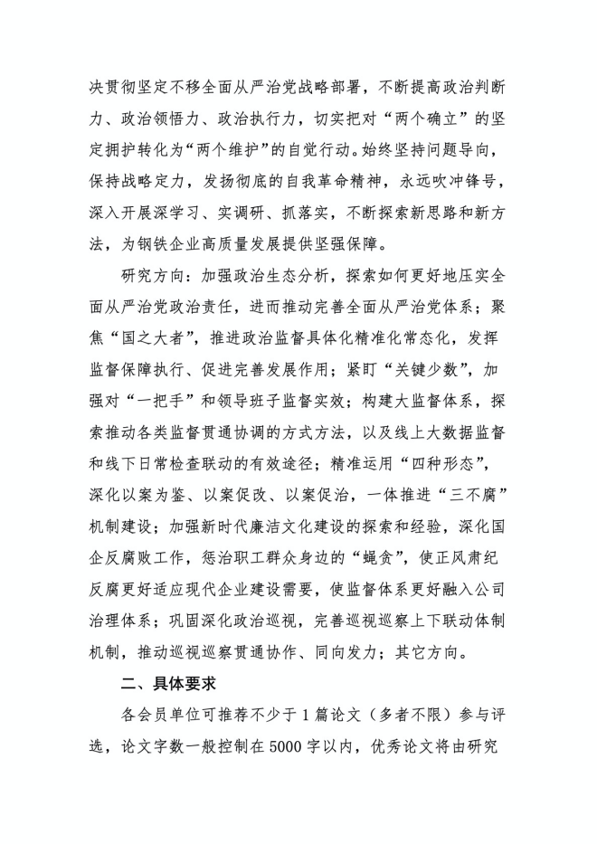 關於組織征集全國鋼鐵企業紀檢監察工作研究會第十九次年會論文的通知