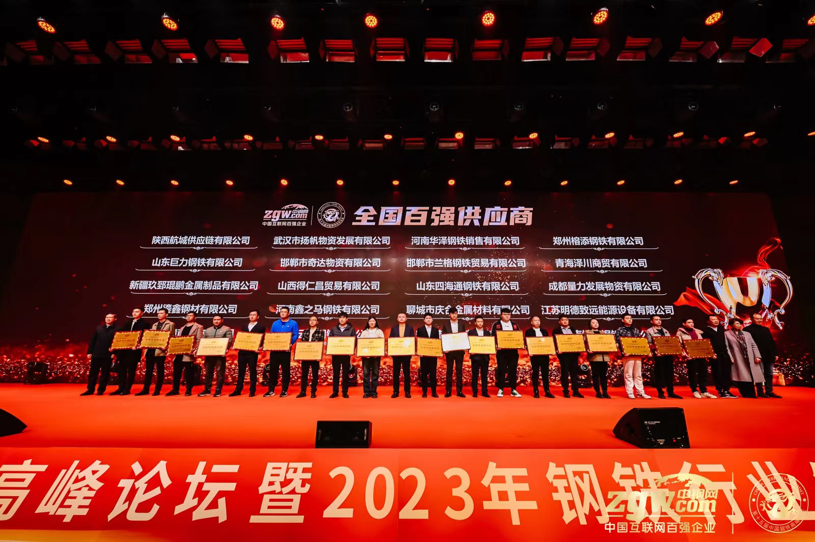 論壇同期還舉行了“建材行業高峰論壇”“板材行業高峰論壇 ”“型管行業高峰論壇 ”“鋼廠生產營銷座談會”四場分論壇和鋼鐵行業商協會聯誼會,並舉行了“2023年全國鋼鐵供應商百強企業”頒獎典禮、中鋼網主播筱雅粉絲見麵會、中鋼網資訊研究院升級揭牌儀式和鋼廠簽約儀式。