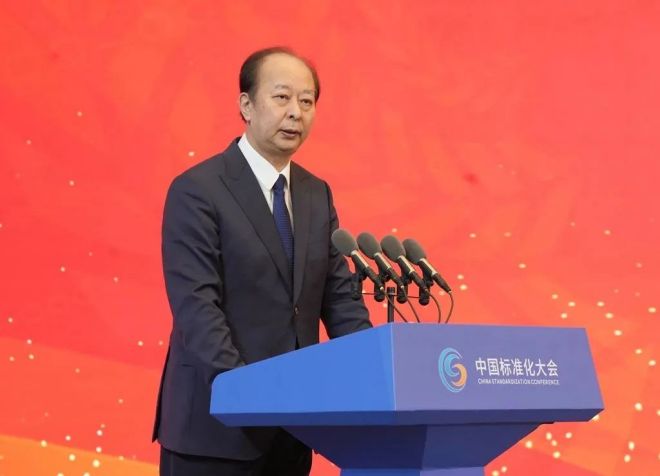 國家市場監督管理總局副局長、國家標準化管理委員會主任田世宏為張曉剛頒獎。