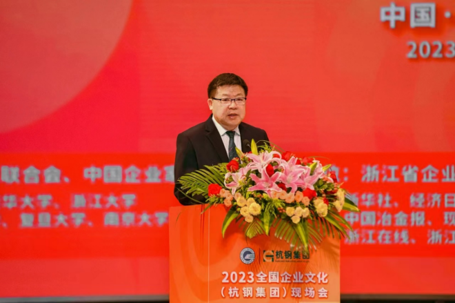 中國企業聯合會、中國企業家協會黨委委員、副理事長劉鵬,國務院國資委行業協會商會黨建工作局原局長張濤,浙江省國資委黨委書記、主任董貴波,浙江省企業聯合會、浙江省企業家協會常務副會長兼秘書長鄭一方分別致辭;杭鋼集團黨委書記、董事長張利明作杭鋼企業文化成果報告;北京大學原副校長、教授、博導張國有作點評。會議由中國企業聯合會企業文化工作委員會秘書長王建軍主持。浙江省人大常委會委員、省殘聯黨組書記、理事長蔡國春,浙江省政府原副秘書長李雲林,浙江省文投集團黨委書記、董事長林亮,杭鋼集團黨委副書記、總經理章建成等出席會議。