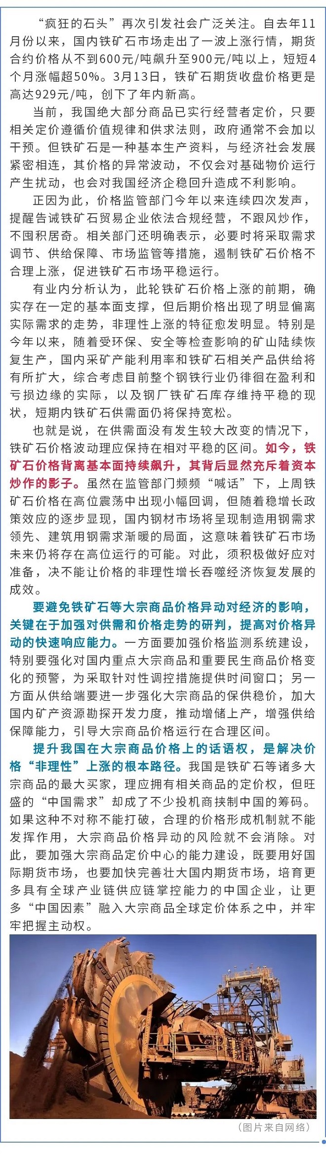 經濟日報:鐵礦石價格異動不可掉以輕心