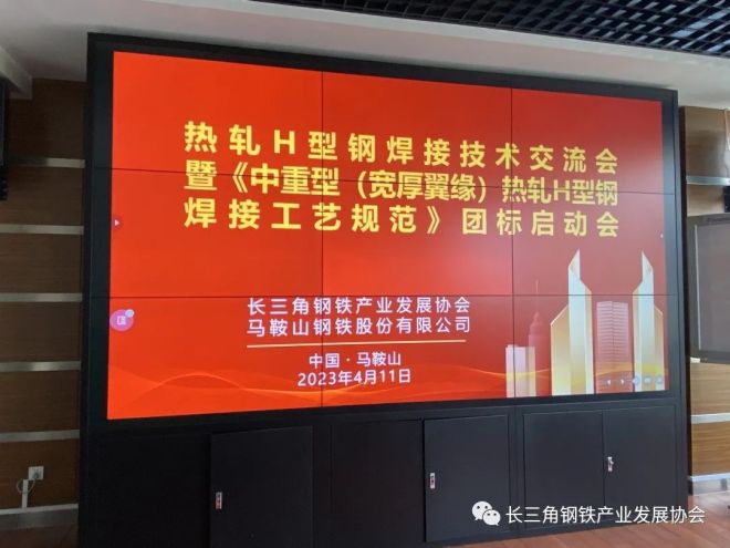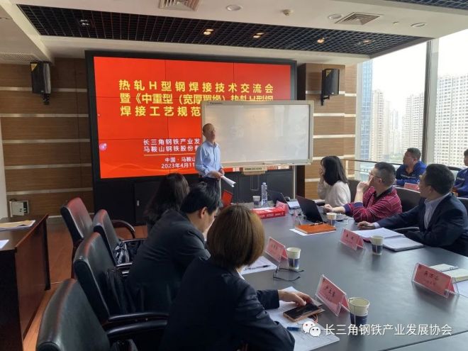 2023年4月11日下午,長三角鋼鐵產業發展協會主辦的“熱軋H型鋼焊接技術交流會暨《中重型(寬厚翼緣)熱軋H型鋼焊接工藝規範》團標啟動會在馬鋼股份有限公司會議室圓滿召開。