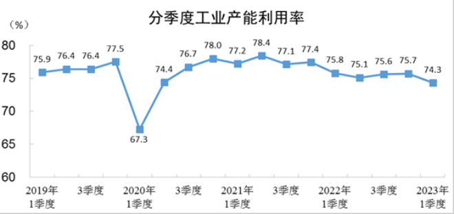 一季度全國工業產能利用率為74.3%