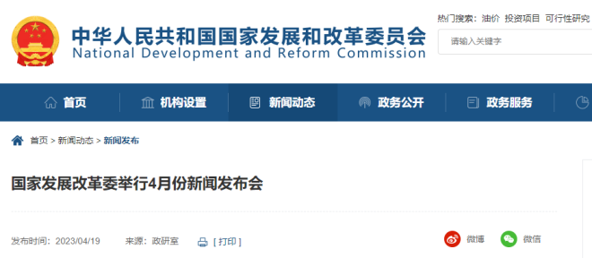 從國家發改委網站獲悉,4月19日,國家發展改革委舉行4月份新聞發布會。