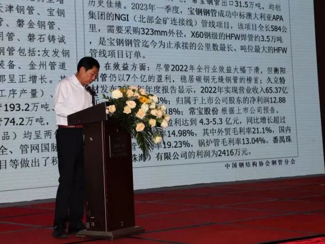 隨後鄭貴英作了主題“高引領 新追求 練內功 全麵推進鋼管行業高質量發展”的工作報告,報告回顧了中國鋼管行業在2022年的運行情況,對2022年以來會員企業取得的主要成績做出總結,並針對2023年第一季度行業運行情況進行預測,提出了下半年鋼管行業的重點工作與發展方向。