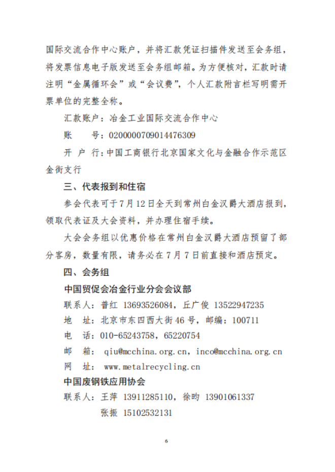 關於召開第十五屆中國金屬循環應用國際研討會暨中國廢鋼鐵應用協會七屆三次會員大會的通知