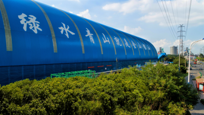 龍騰特鋼積極響應“雙碳”政策,在龍騰碼頭封閉大棚投資建設了23.5MW棚頂光伏項目,項目位於常熟龍騰特鋼樓頂,由6.8萬塊單晶光伏板拚接而成,麵積比“鳥巢”還大,是目前國內已知最大跨度的弧形BIPV項目。“把光伏板融入建築中,既達到超低排放,又能實現企業的低碳發展。”常熟龍騰特鋼外協辦主任袁燕介紹,該項目最大每年可提供約4850萬千瓦時清潔電力,每年可減少碳排放量約3.8萬噸。龍騰碼頭也成為全省首個“碳中和”碼頭,實現減汙降碳協同增效。據悉,該項目目前正在申報吉尼斯世界紀錄。