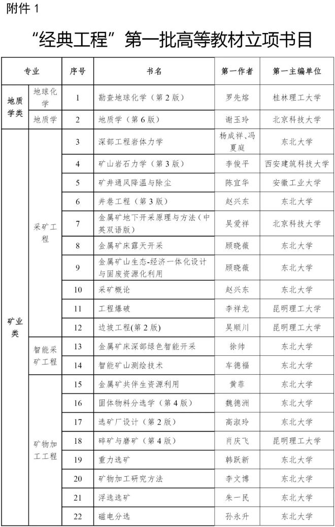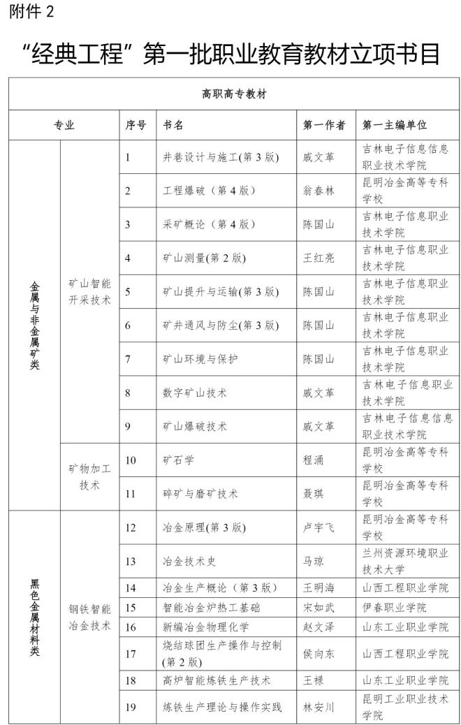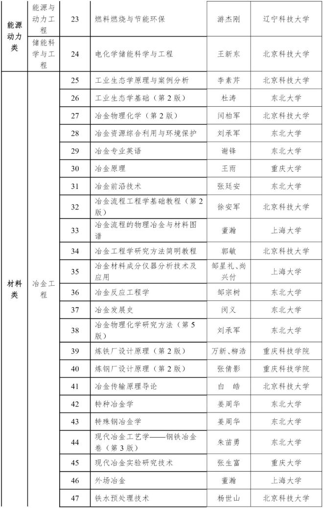 關於公布“冶金專業教材和工具書經典傳承國際傳播工程”第一批立項教材書目的通知