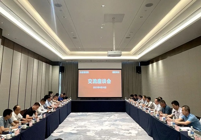 2023年6月26日,冶金工業規劃研究院範鐵軍院長、趙峰院長助理、劉濤院長助理及綜合規劃處、能源處、冶煉原料處、軋鋼處、礦山處、總圖物流處、經濟處、低碳發展研究中心、事業發展處專業人員赴四川德勝集團釩鈦有限公司,與德勝釩鈦周平董事長、徐瑜副總經理、麥吉昌副總經理、王周總經理助理、冉頂立總經理助理及生產部、安全環保部、物流運輸部、行政部、營銷部、財務部、技術中心、能管中心主管領導和相關負責人,共同就深化合作促進德勝釩鈦高質量發展進行座談。