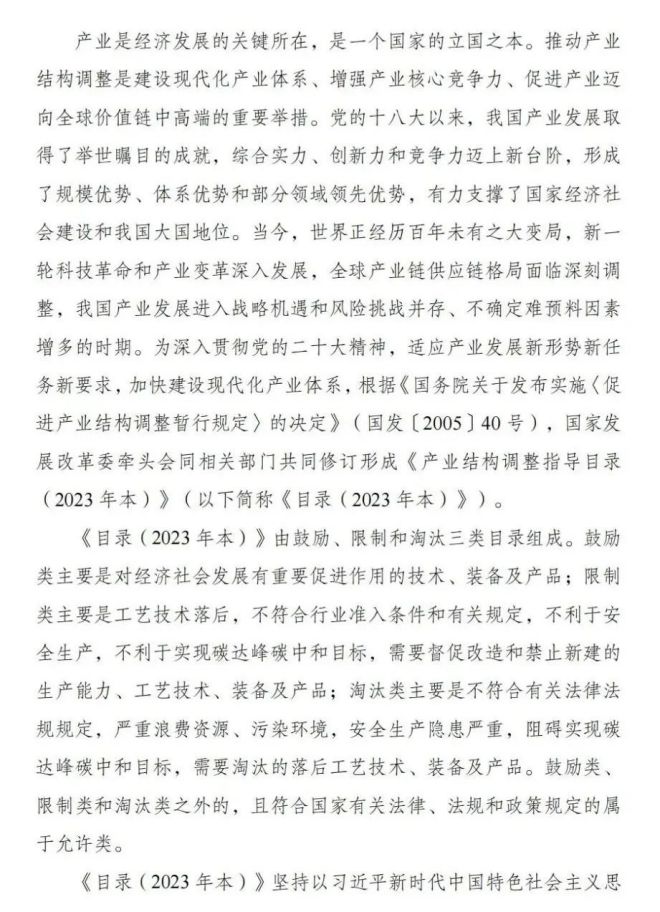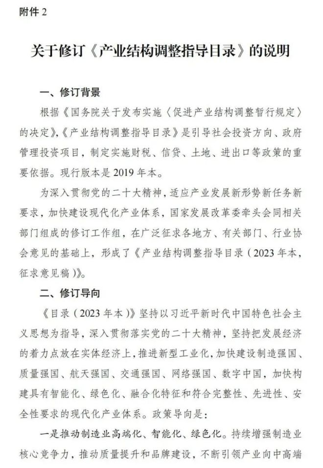 國家發改委發布《產業結構調整指導目錄(2023年本,征求意見稿)》