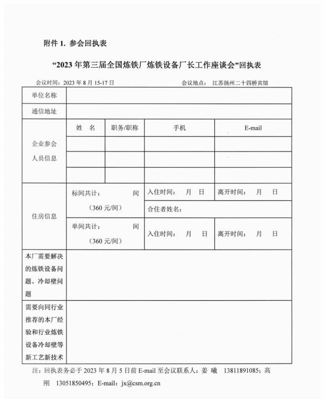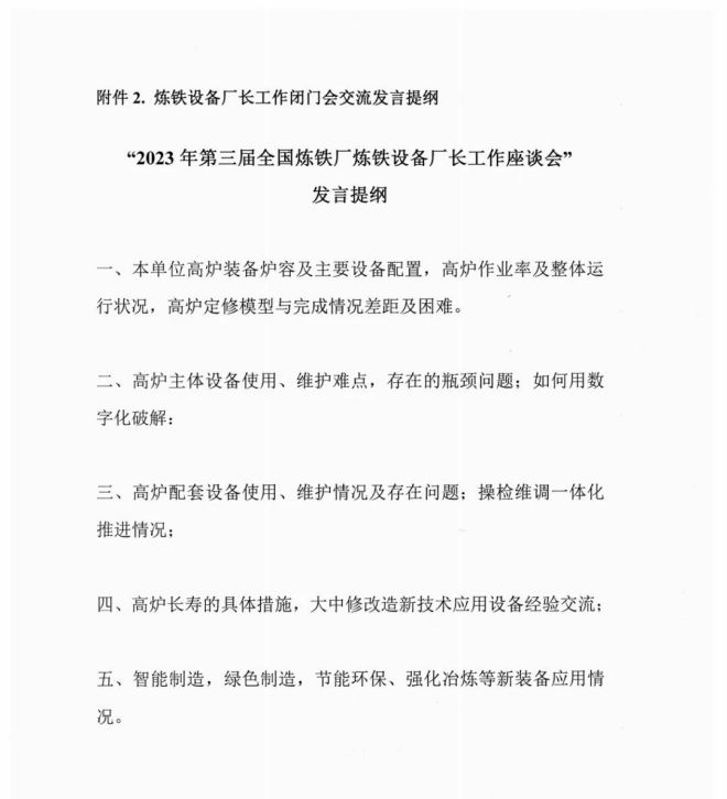 關於召開“2023年第三屆全國煉鐵廠煉鐵設備廠長工作座談會”的通知