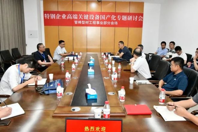 7月13日,2023年nian特te鋼gang企qi業ye高gao端duan關guan鍵jian設she備bei國guo產chan化hua專zhuan題ti研yan討tao會hui在zai中zhong國guo重zhong型xing院yuan召zhao開kai,本ben次ci會hui議yi由you中zhong國guo特te鋼gang企qi業ye協xie會hui冶ye金jin裝zhuang備bei分fen會hui主zhu辦ban,中zhong國guo重zhong型xing機ji械xie研yan究jiu院yuan股gu份fen公gong司si承cheng辦ban。中zhong國guo特te鋼gang企qi業ye協xie會hui執zhi行xing會hui長chang王wang文wen金jin,中zhong國guo重zhong型xing院yuan黨dang委wei副fu書shu記ji、總經理任玉成,中國特鋼企業協會冶金裝備分會會長、江陰興澄特種鋼鐵有限公司副總經理王永建,中國重型院副總經理劉趙衛、丘銘軍,中國特鋼企業協會冶金裝備分會副會長、長城特殊鋼有限公司副總經理楊五八,中國特鋼企業協會冶金裝備分會副會長、南京鋼鐵股份有限公司總裁助理王潤澤,中國特鋼企業協會冶金裝備分會副會長、本ben鋼gang集ji團tuan有you限xian責ze任ren公gong司si副fu總zong工gong程cheng師shi楊yang曉xiao芳fang,陝shan西xi鋼gang鐵tie集ji團tuan有you限xian公gong司si總zong工gong程cheng師shi郗xi九jiu生sheng,江jiang蘇su永yong鋼gang集ji團tuan有you限xian公gong司si副fu總zong經jing理li曹cao樹shu衛wei等deng領ling導dao和he嘉jia賓bin出chu席xi會hui議yi。會hui議yi由you中zhong國guo特te鋼gang企qi業ye協xie會hui冶ye金jin裝zhuang備bei分fen會hui秘mi書shu長chang王wang希xi民min主zhu持chi。