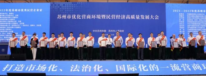 會議表彰了2021—2022年度蘇州市優秀民營企業家和民營經濟工作貢獻突出單位,對2023“蘇州民營企業創新100強”“蘇州民營企業100強”企業進行了授牌,發布了蘇州市《優化營商環境創新行動2023》126項創新改革舉措。