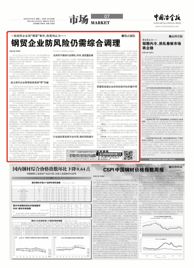一批鋼貿企業現“爆雷”事件,陳雷鳴認為——鋼貿企業防風險仍需綜合調理