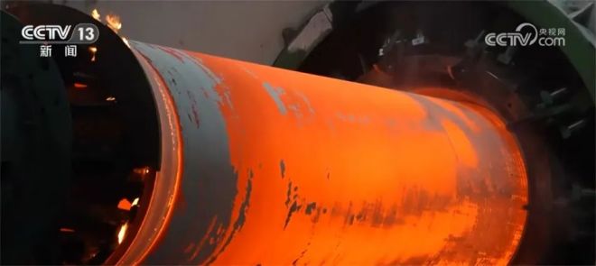 總台央視記者 古峻嶺:經過1300多℃的高溫澆鑄成型,全球最大口徑的球墨鑄鐵管正式投產下線。此刻我距離它十幾米遠,就已經感覺到滾滾的熱浪襲來。