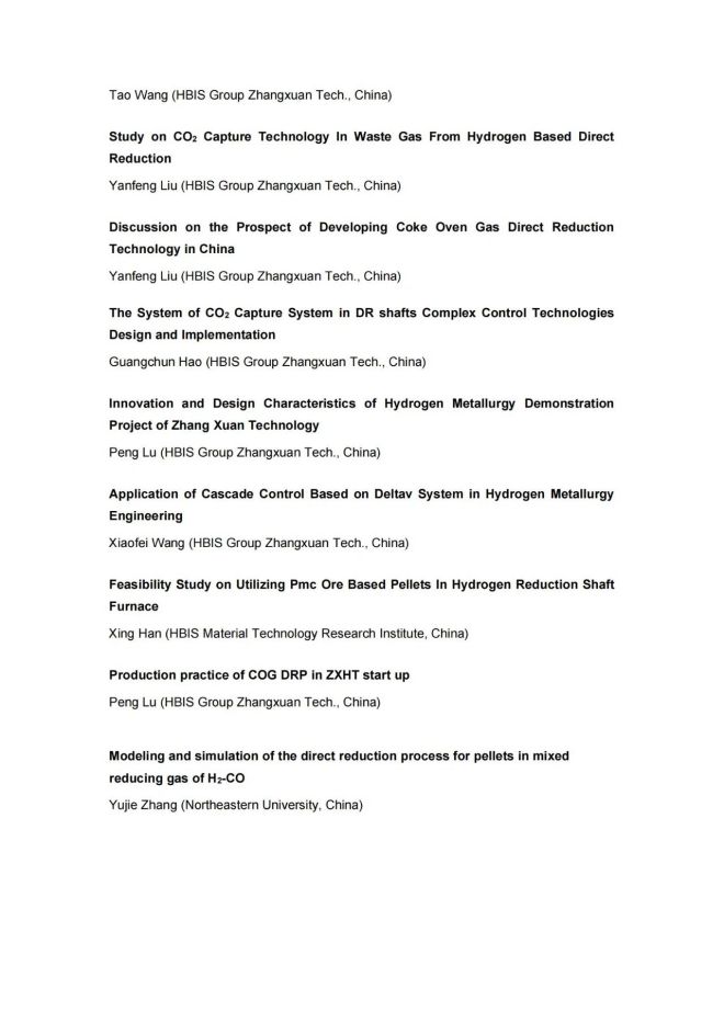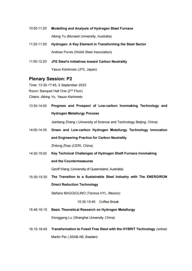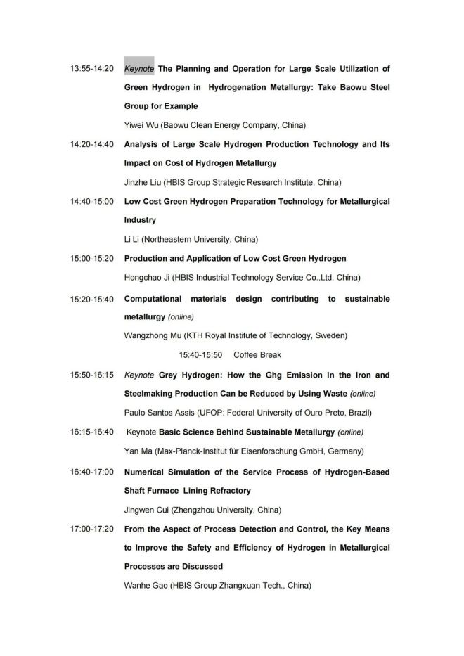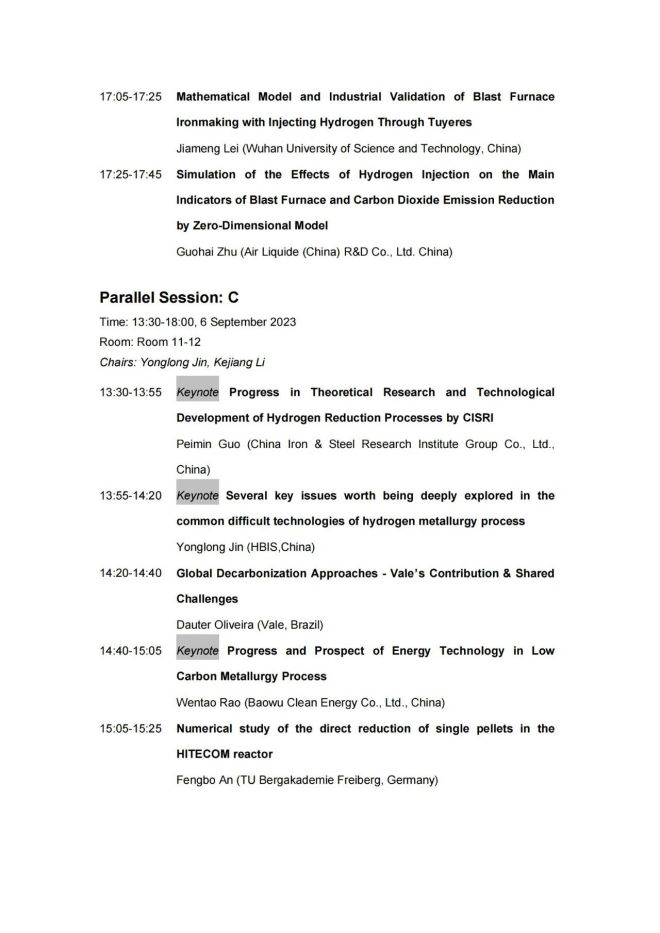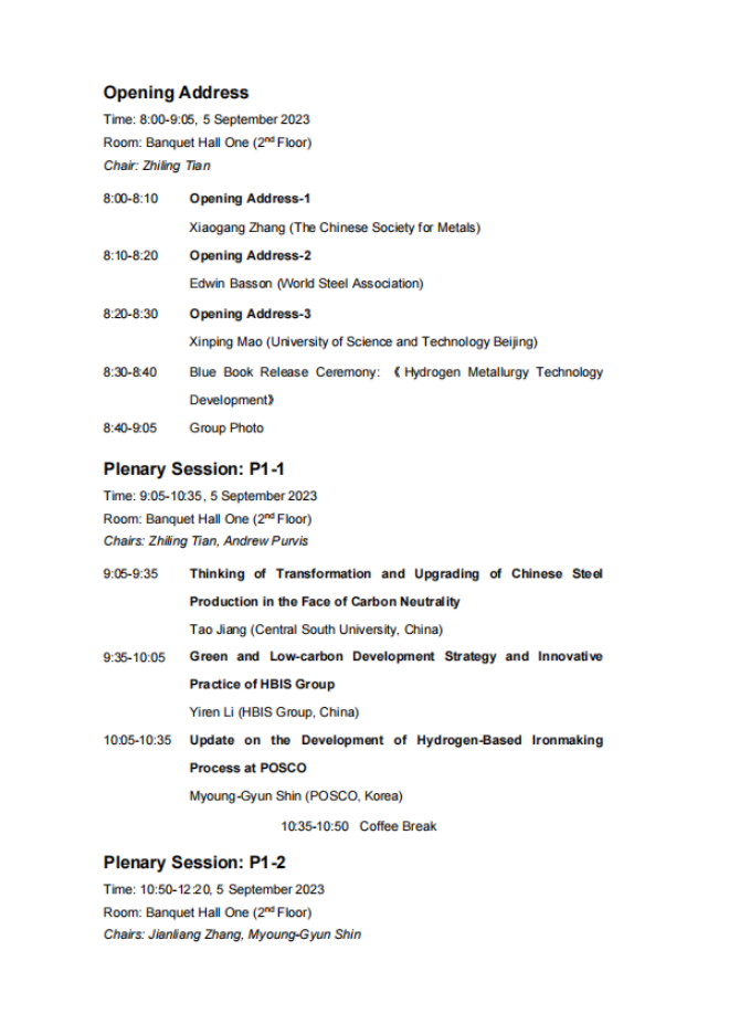 技術日程 | 2023年氫冶金國際研討會