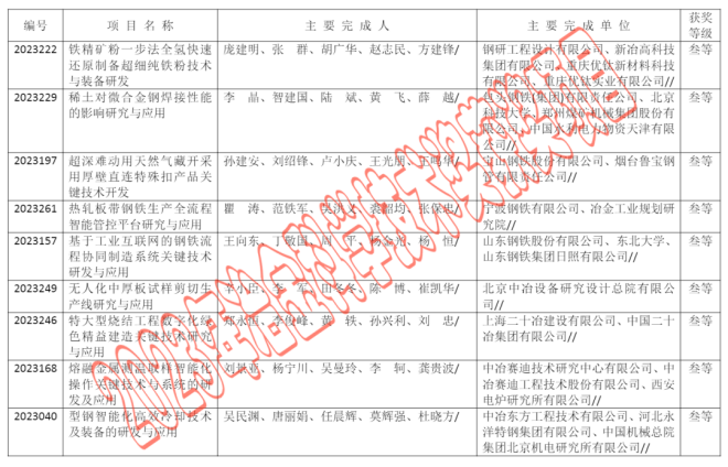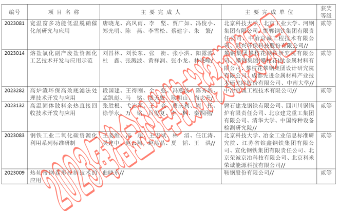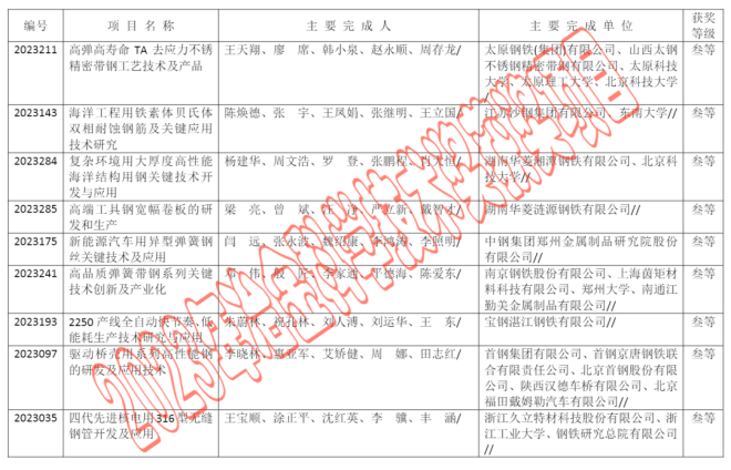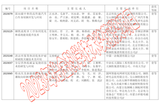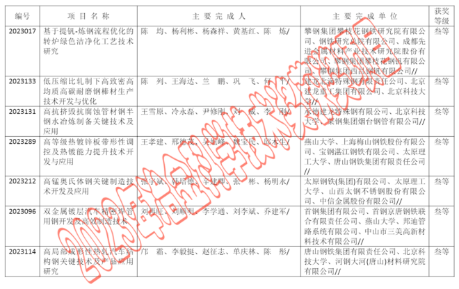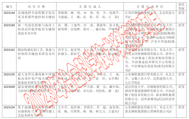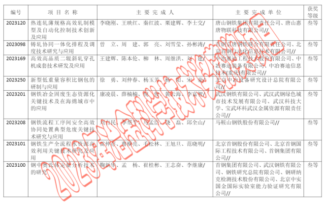 2023年中國鋼鐵工業協會、中國金屬學會冶金科學技術獎公告