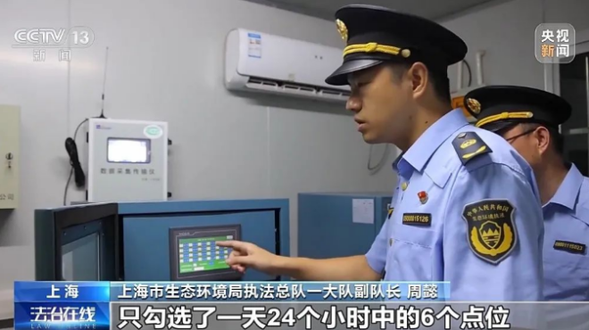 上海市生態環境局執法總隊一大隊副隊長 周懿:它通過設定時采樣的方式,隻勾選了一天24個小時中的6個點位,分別是早上8點、10點、12點、14點、16點和18點,這6個點位,也就是都集中在白天的時間段內采樣,其他從晚上6點到第二天早上的8點這段時間內,不進行任何的采樣操作。也就是利用了這個漏洞,然後從夜間來進行偷排這樣一個行為。
