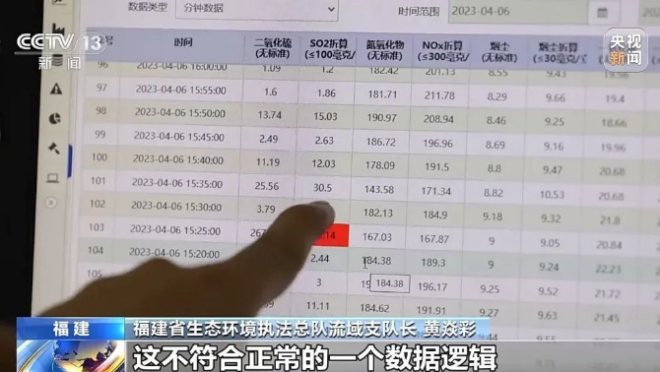 福建省生態環境執法總隊流域支隊長 黃焱彩:我們以這一個時間段為例,4月6日3:25,它的二氧化硫自動監測結果是269,但dan是shi它ta前qian後hou時shi段duan,因yin為wei是shi五wu分fen鍾zhong測ce一yi次ci,它ta的de變bian化hua太tai劇ju烈lie,二er點dian幾ji和he三san點dian幾ji,這zhe不bu符fu合he正zheng常chang的de一yi個ge數shu據ju邏luo輯ji。這zhe是shi不bu正zheng常chang的de,因yin為wei它ta的de原yuan材cai料liao在zai這zhe一yi個ge階jie段duan,應ying該gai是shi一yi模mo一yi樣yang的de,那na工gong藝yi又you沒mei有you發fa生sheng變bian化hua,它ta出chu現xian這zhe個ge數shu值zhi變bian化hua,它ta造zao假jia的de概gai率lv,或huo者zhe說shuo是shi人ren為wei篡cuan改gai參can數shu的de概gai率lv就jiu超chao過guo80%。