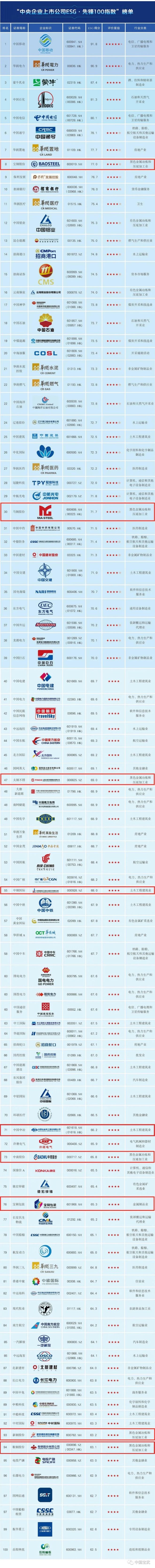 寶武7家公司、鞍鋼股份、中國中冶入圍“央企ESG·先鋒100”指數榜單