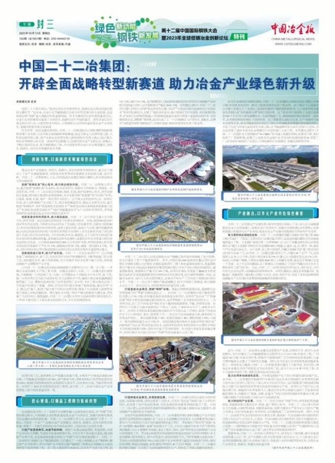 國際鋼鐵大會專題報道|中國二十二冶集團:開辟全麵戰略轉型新賽道 助力冶金產業綠色新升級