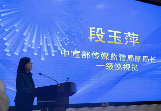 圖為中宣部傳媒監管局副局長、一級巡視員段玉萍出席並致辭。