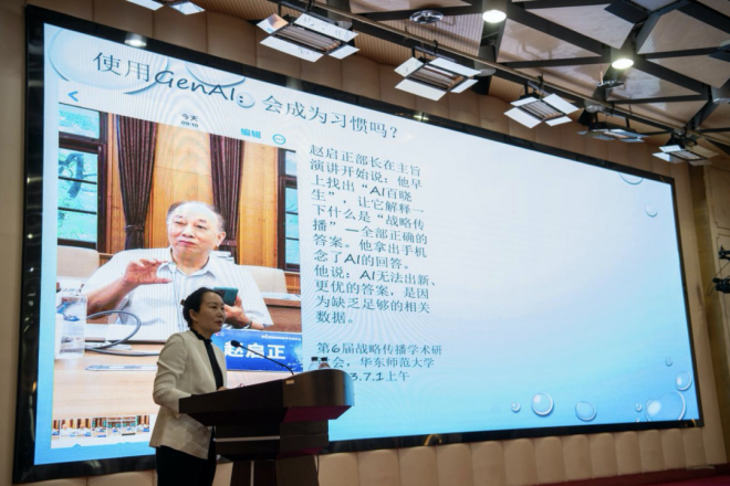 圖為清華大學新聞與傳播學院智媒中心主任、教授陳昌鳳作主旨演講。