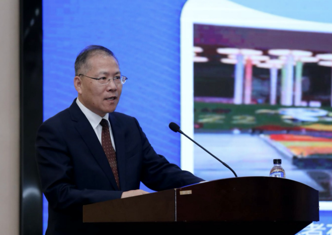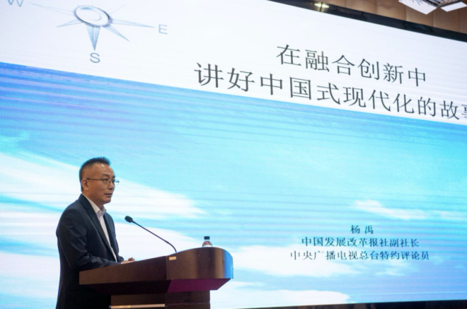 圖為中國發展改革報社副社長、中央廣播電視總台特約評論員楊禹作主旨演講。