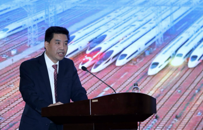 圖為《人民鐵道》報業有限公司黨委書記、總經理田世剛作主題演講。