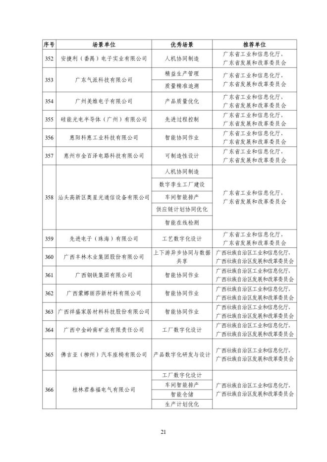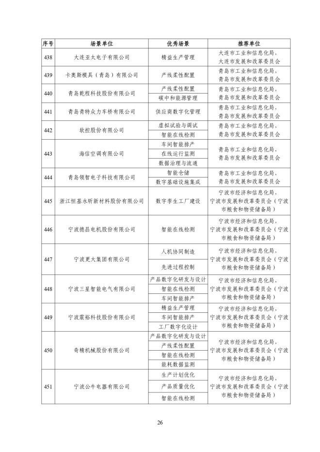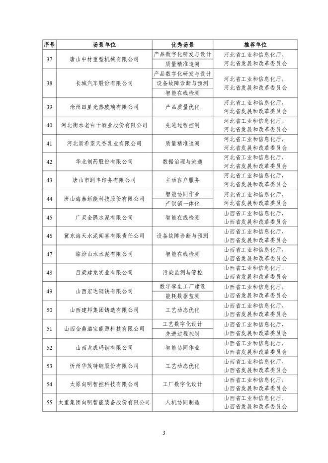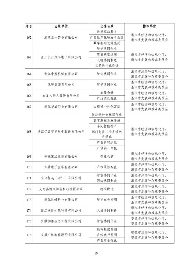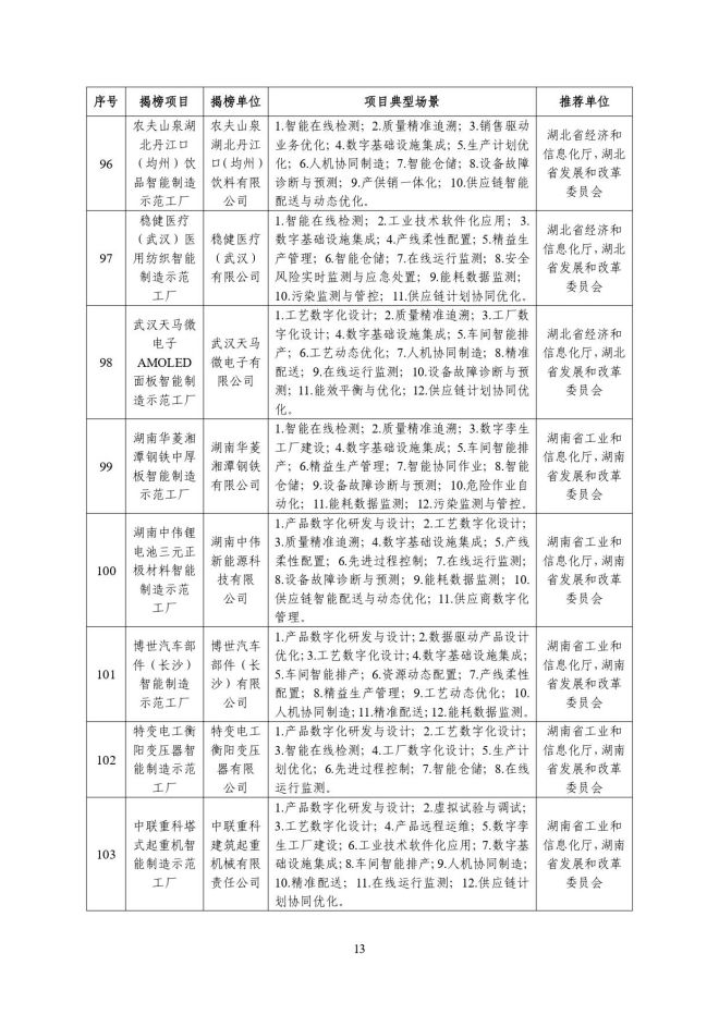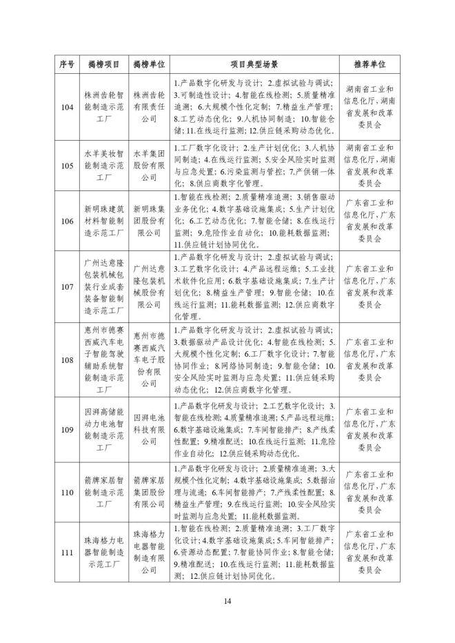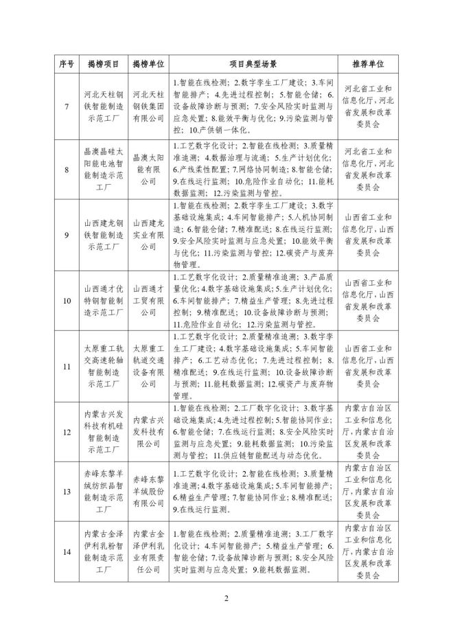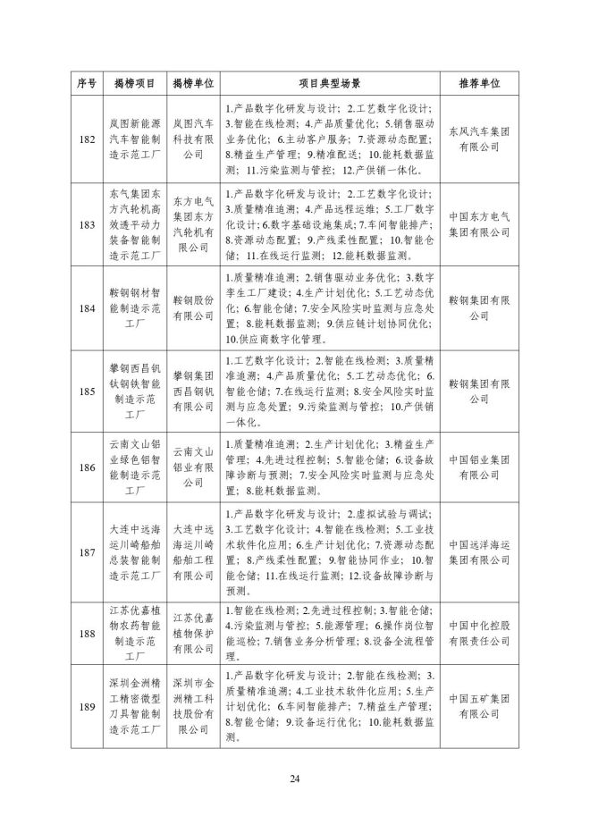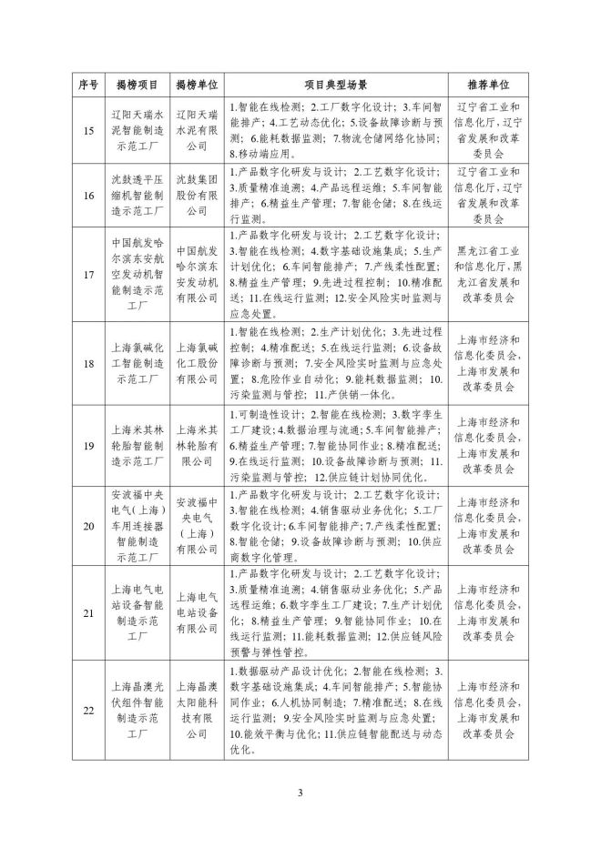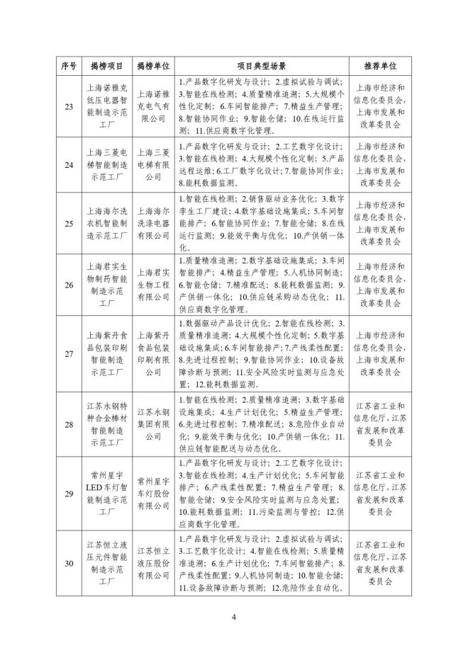 根據《關於開展2023年度智能製造試點示範行動的通知》(工信廳聯通裝函〔2023〕212號),近日,工信部將擬入選的2023年度智能製造示範工廠揭榜單位和優秀場景名單進行公示,名單如下: