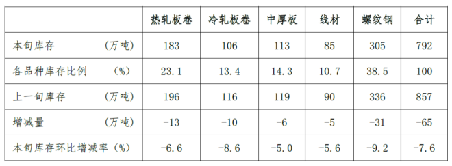 11月上旬鋼材社會庫存792萬噸 環比下降7.6%