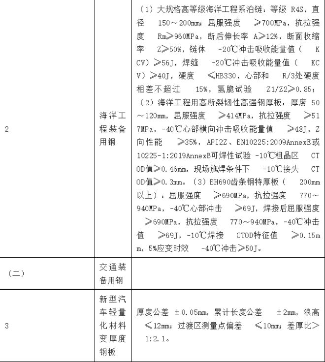 一批先進鋼鐵材料入選《重點新材料首批次應用示範指導目錄(2024年版)》(征求意見稿)
